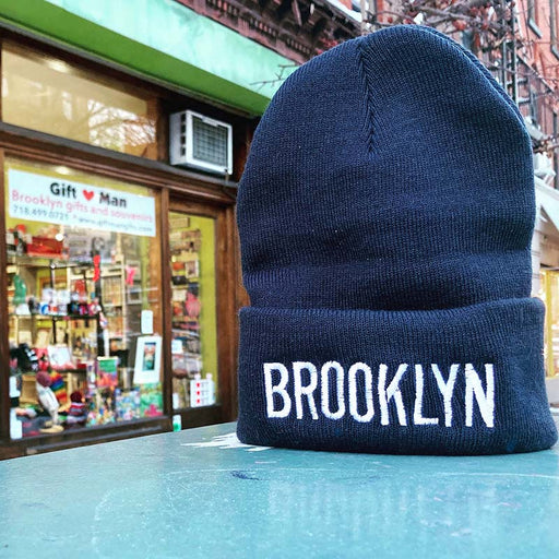 Gift-ManPort and Company beanie with large Brooklyn white font. We embroider in house.