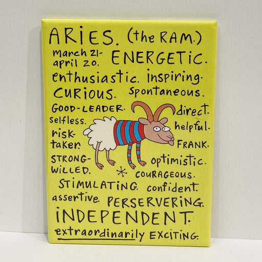 GiftManHigh quality steel fridge magnet 90mm x 60mm (3.5″ x 2.5″) Licensed and copyrighted --Aries Zodiac sign positive traits, fridge magnet. “Under the...